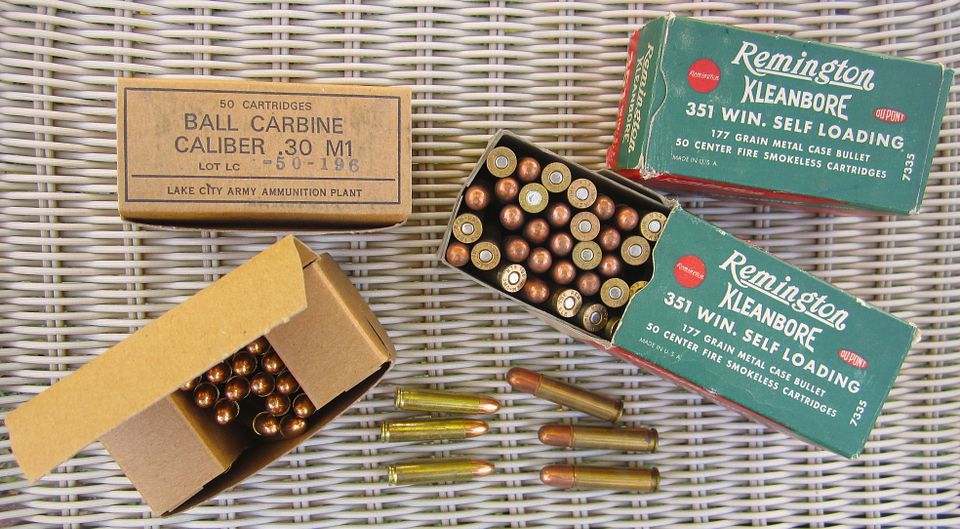 .351 Winchester Self Loading in the older full metal jacket bullet guise, primarily intended for law enforcement and military contract .30 Carbine.